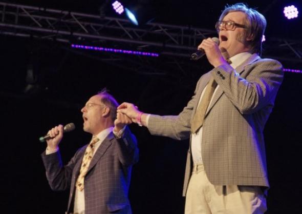 Winnaars van de tweede voorronde, Nel , Nelly en de Nuilers. Nel links, Nelly rechts, of omgekeerd. Met een eerbetoon aan John Travolta, hij moest eens weten!