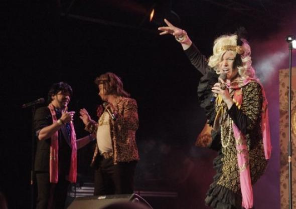 Tijdens het juryberaad moesten Ronnie en zijn Ronda's de stemming erin houden.....