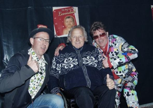 Wisseling van de wacht. Keessie B meets Danny P. Voor Keessie zn 750ste optreden als zichzelf..... Mijlpaal!