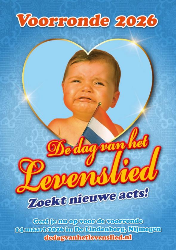 Heb jij het levenslied in je? En wil je op Moederdag (10 mei 2026) een volle tent in het Goffertpark compleet plat spelen? Meld je dan aan via onderstaand formulier.